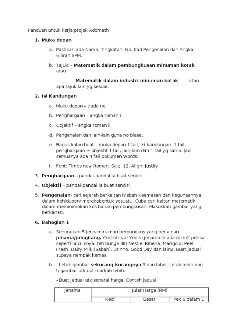Panduan Untuk Kerja Projek Addmath Pdf